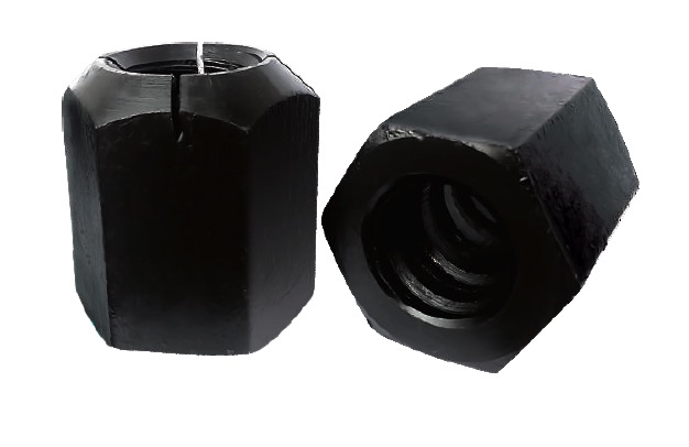 精軋螺母:是精軋螺紋鋼配件錨具的一個重要組成部分,精軋螺母(YJM螺母)為平型螺母(下螺母)、錐型螺母(上螺母),平型螺母常用于固定端,錐型螺母常用于張拉端。